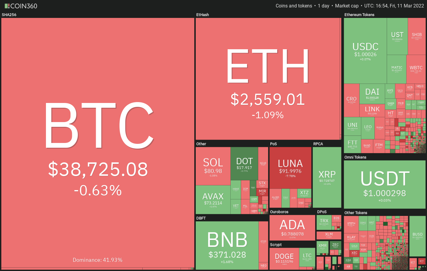 Price analysis 3/11: BTC, ETH, BNB, XRP, LUNA, SOL, ADA, AVAX, DOT, DOGE