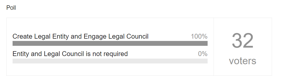Considering the possibility of risk mitigation and liability limitation via legal clarity for holders and contributors, the proposal received a 100% vote for the implementation of the legal structure.