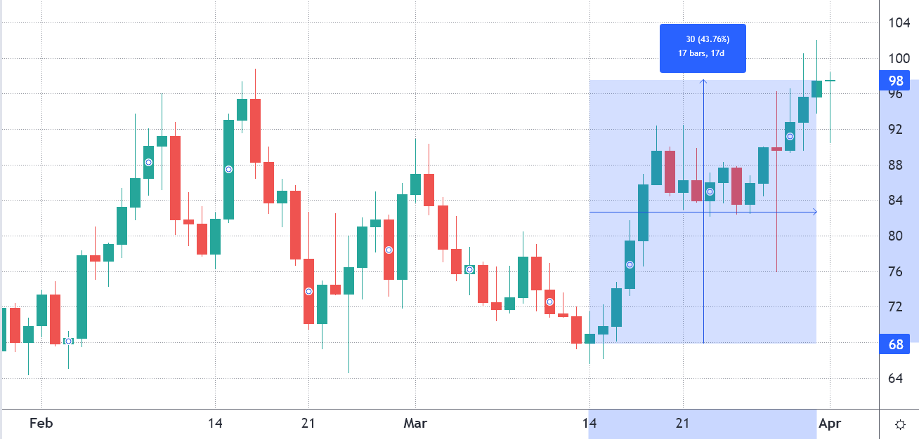 Avalanche (AVAX) jumped 43.8% between March 14 and March 31 to a $97.50 daily close, which is the highest level since Jan. 5. This layer-1 scaling solution uses a proof-of-stake model and has amassed $9 billion in total value locked (TVL) deposited on the network’s smart contracts.