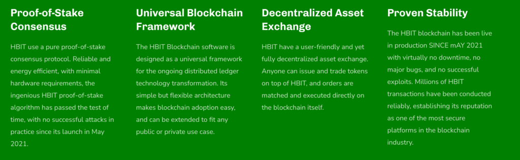 HBIT is a 100% proof-of-stake cryptocurrency, constructed in Java. HBIT unique proof-of-stake algorithm does not depend on any implementation of the coin age concept used by other proof-of-stake cryptocurrencies.