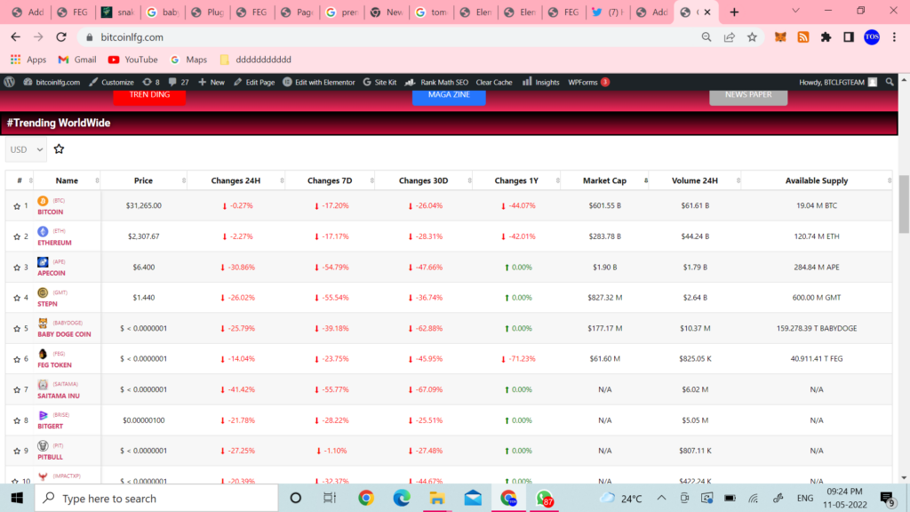 feg and babydoge has maintained to be in trending list since last week on bitcoinlfg.com